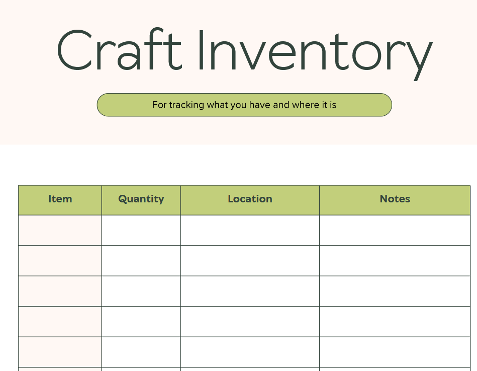 Craft Supplies Inventory Free Printable